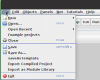 This section present the menus available when a project is opened. The menus that are part of the main menu are still present. They will not be listed here.