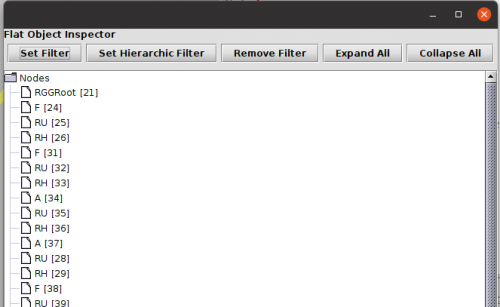 Displays all objects currently loaded in project in a flat (non-hierarchical) list. The window allows setting and removing (hierarchical) filters, as well as expanding and collapsing the list.