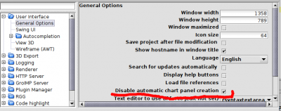 When created through the RGG code, chart panels are automatically displayed when the code is run. Thus, when running a project that call plots, many panels might popup. It is possible to disable their automatic creation in the options.