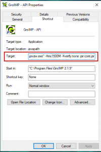 2. Right click on the the GroIMP desktop shortcut and select Properties (see image on the right)
