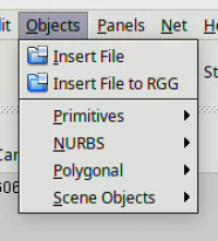 A second more reusable way is to add the external objects to the Object explorer. The explorer can be found on the main menu on Panels/Explorers/Objects. In the newly opened panel a menu with the item Object should be visible. Under this item following the path '/new/insert File' we can select the same file as above. After selecting the file with the file dialog a popup asks “How should the file be added?” the three options mean: