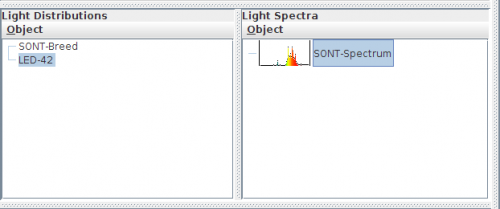 Both can be imported in the same way by open the Panels Tab and go to Explorers first. For PLD, the 'Create new distribution object' needs to be called and for SPD 'Create new spectra object' is used. In the new panel, Object → New → file/spectrallightmapnode needs to be selected to get a file dialogue where the wanted file can be selected. After the file is imported, it is recommended to give the reference a self-explanatory name for easy use later within the code.