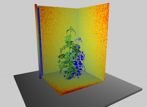 Using the above code and adding two more areal sensors along the XZ- and YZ-plane, we can get visualizations as the following of an adult tomato plant: