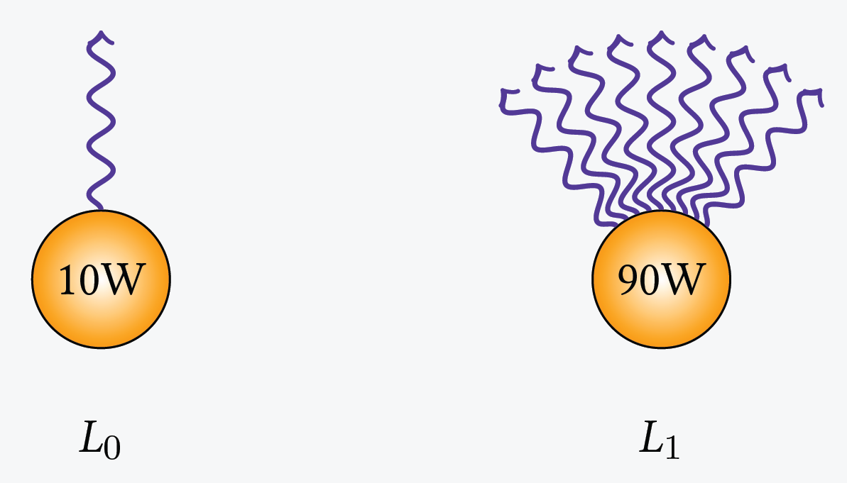 As an example, a scene with two light sources with a power of 10W and 90W, and a total number of 10.000 rays, the first light will create 1.000 rays, the second one 9.000 rays.