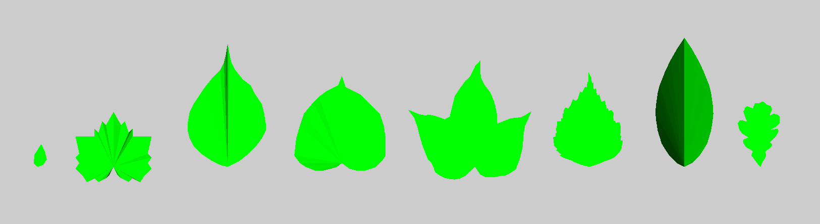 The predefined 3D leaf shapes will look as shown below: