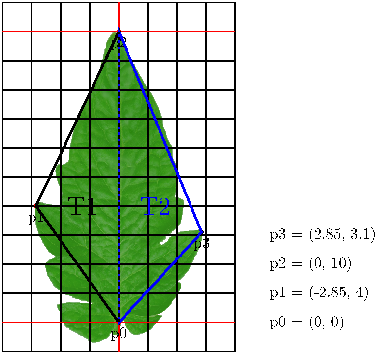 and when placed behind our points, the above triangulation could be already a very rough simplification of this particular leaflet.