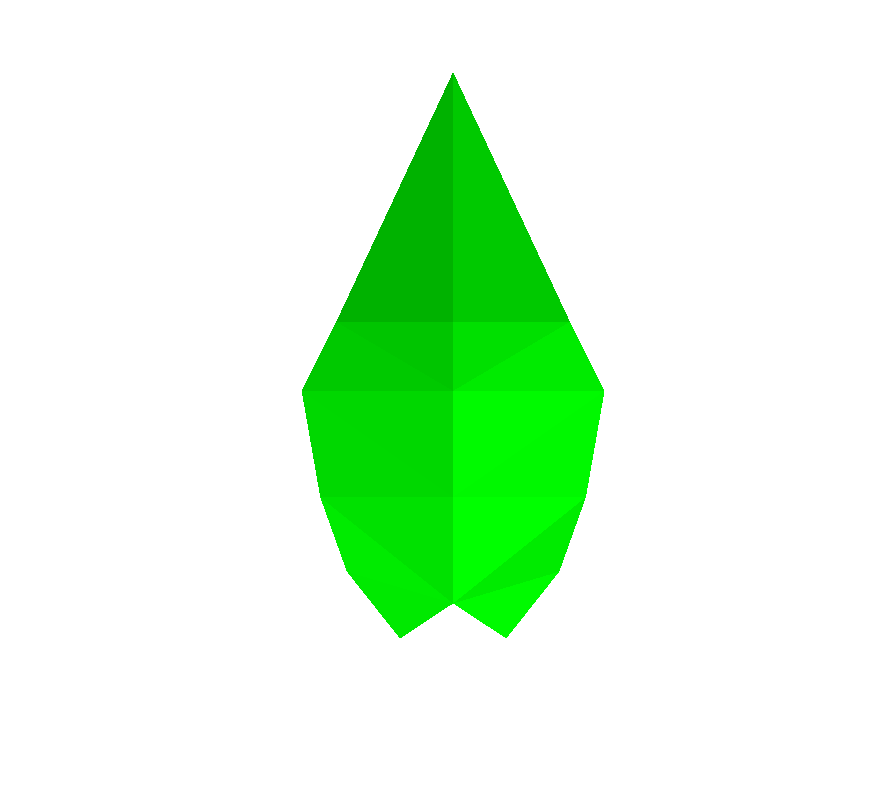 module Leaflet(float length) ==> Scale(length, length, 0.01) MeshNode.(setPolygons(polygonMesh), setShader(GREEN));