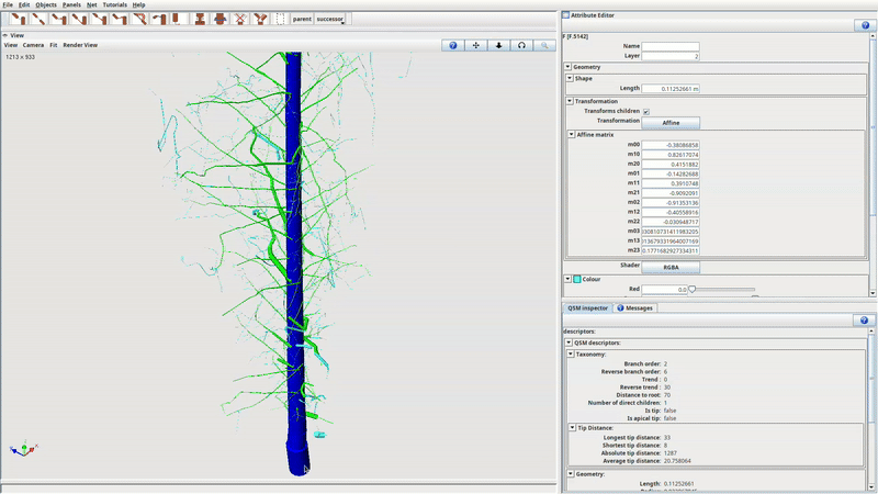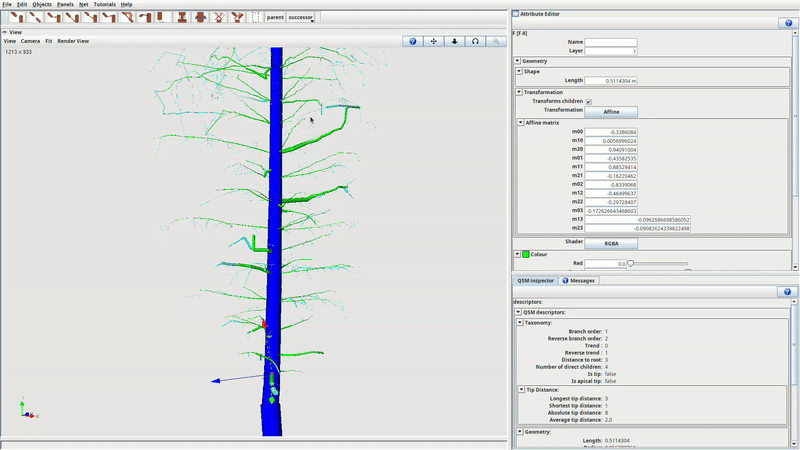 This tutorial explains the workflow of the GUI tools provided by the QSM plugin, based on some example actions. All this functionalities work not only on imported QSM but on DTD or fastrak xml files.