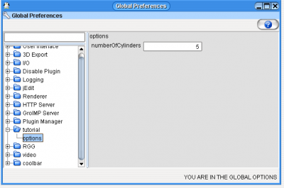 The directory is now using the parameter optionCategory , which will make it visible in the panel preferences of GroIMP. And the tag <option /> is defining a new option with a type and a default value.